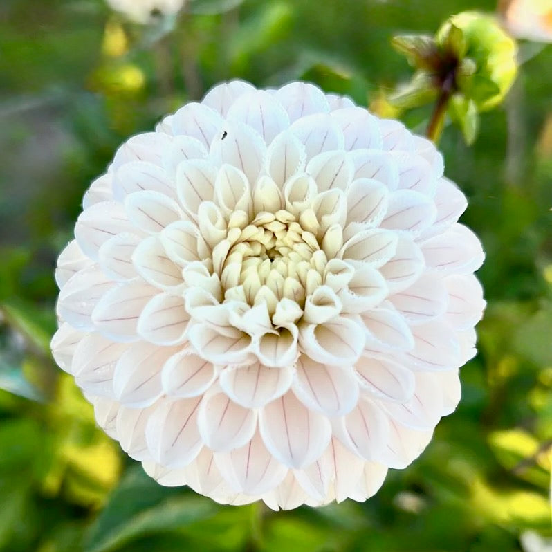 květy jsou bílé, na každém okvětním lístku je velice jemný fialkový proužek. Průměr květu je cca 10cm. (Barva květu a výška rostliny se může mírně lišit. Je závislá hlavně na typu půdy (PH), na dostatku světla, a teplotě. Barvy jsou zároveň vždy sytější těsně po rozvinutí poupěte, postupně světlají. Výška rostliny a velikost květu je přímo závislá na dostatku vláhy a živin v půdě.) |