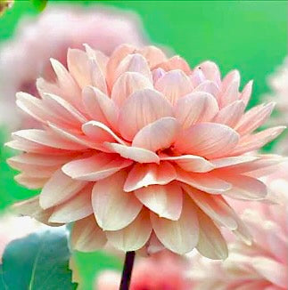 krásný tvar květu ve tvaru leknínu a barva, vycházející z měkkých odstínů lososové, růžové a meruňkové. Barvy se postupně prolínají, tak jak se květ rozvíjí. Květy mají v průměru okolo 15cm. Okvětní lístky jsou velké a překrývají se v několika řadách, takže jen z několika květů vznikne nádherná kytice. (Barva květu a výška rostliny se může mírně lišit. Je závislá hlavně na typu půdy (PH), na dostatku světla, a teplotě. Barvy jsou zároveň vždy sytější těsně po rozvinutí poupěte, postupně světlají. Výška rostliny a velikost květu je přímo závislá na dostatku vláhy a živin v půdě.) |