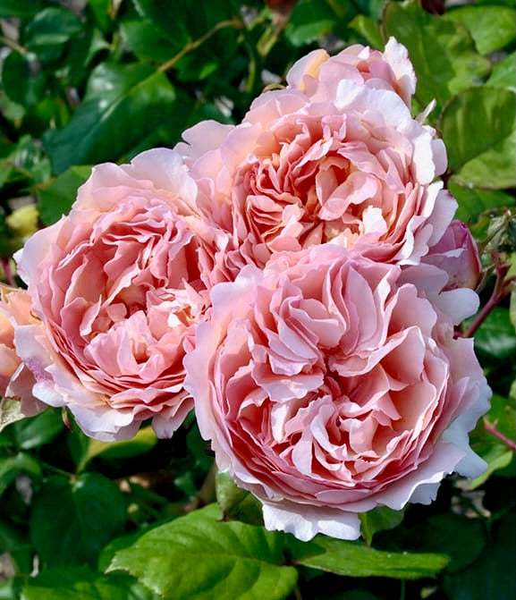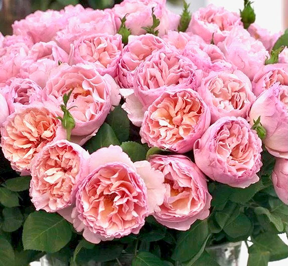 Barva/velikost květu: | květy mají průměr cca 11cm a 68 okvětních lístků. Barva je pudrově růžová, s nádechem meruňkoé až okrové. Květy mají tvar historických růží. Na každém stonku je jeden květ, případně menší skupina květů. |